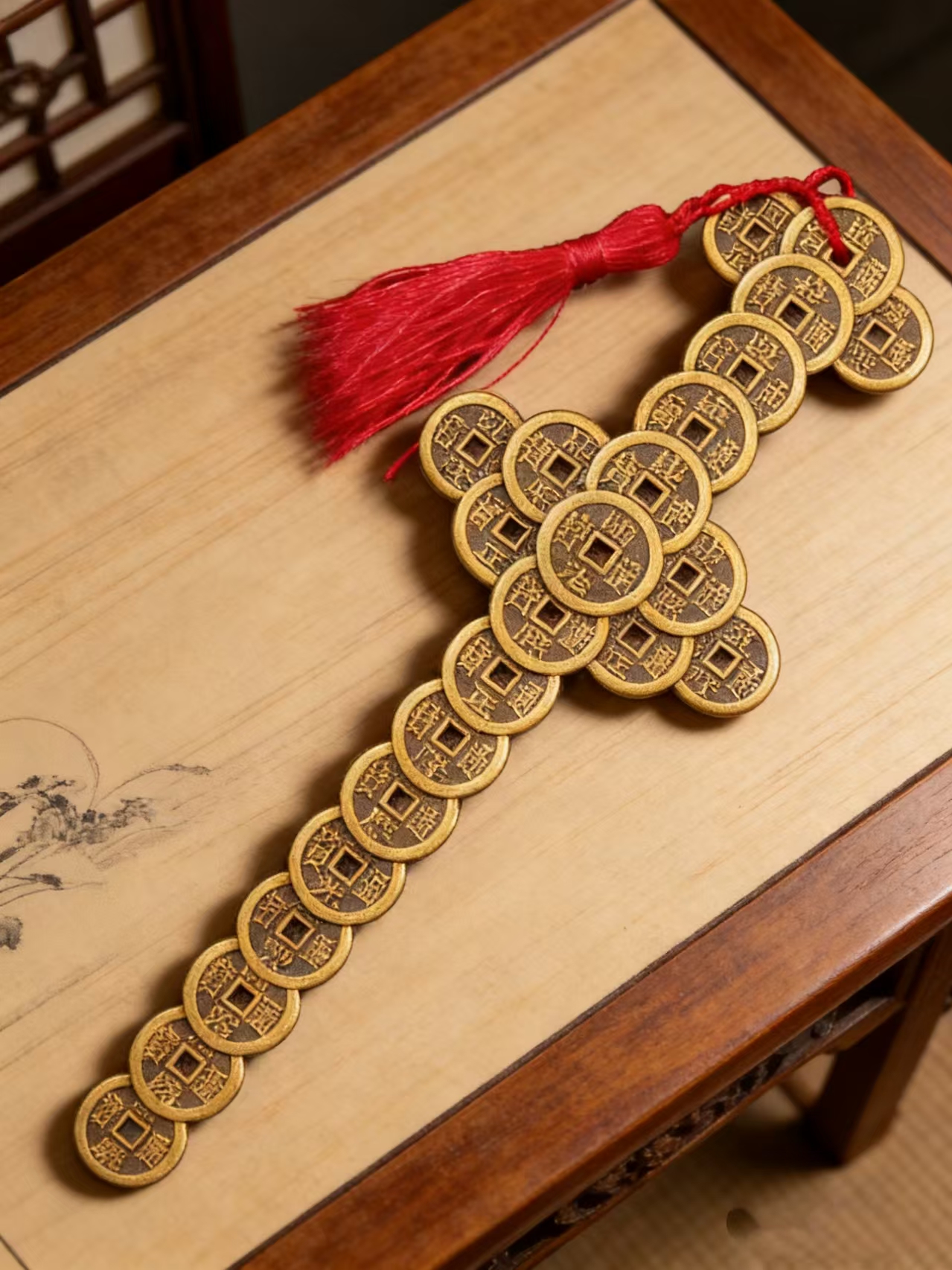There are two versions: the “Great Five Emperors” (ancient dynasty coins) and the more popular “Lesser Five Emperors” (Qing dynasty coins: Shunzhi, Kangxi, Yongzheng, Qianlong, Jiaqing). These represent nearly 180 years of the prosperous “Kangqian Flourishing Age”. Corresponding to the Five Elements in folk tradition, they symbolize endless circulation of fortune. Their round shape (heaven) and square hole (earth) embody ancient cosmology, and their wide circulation endows them with strong positive energy.